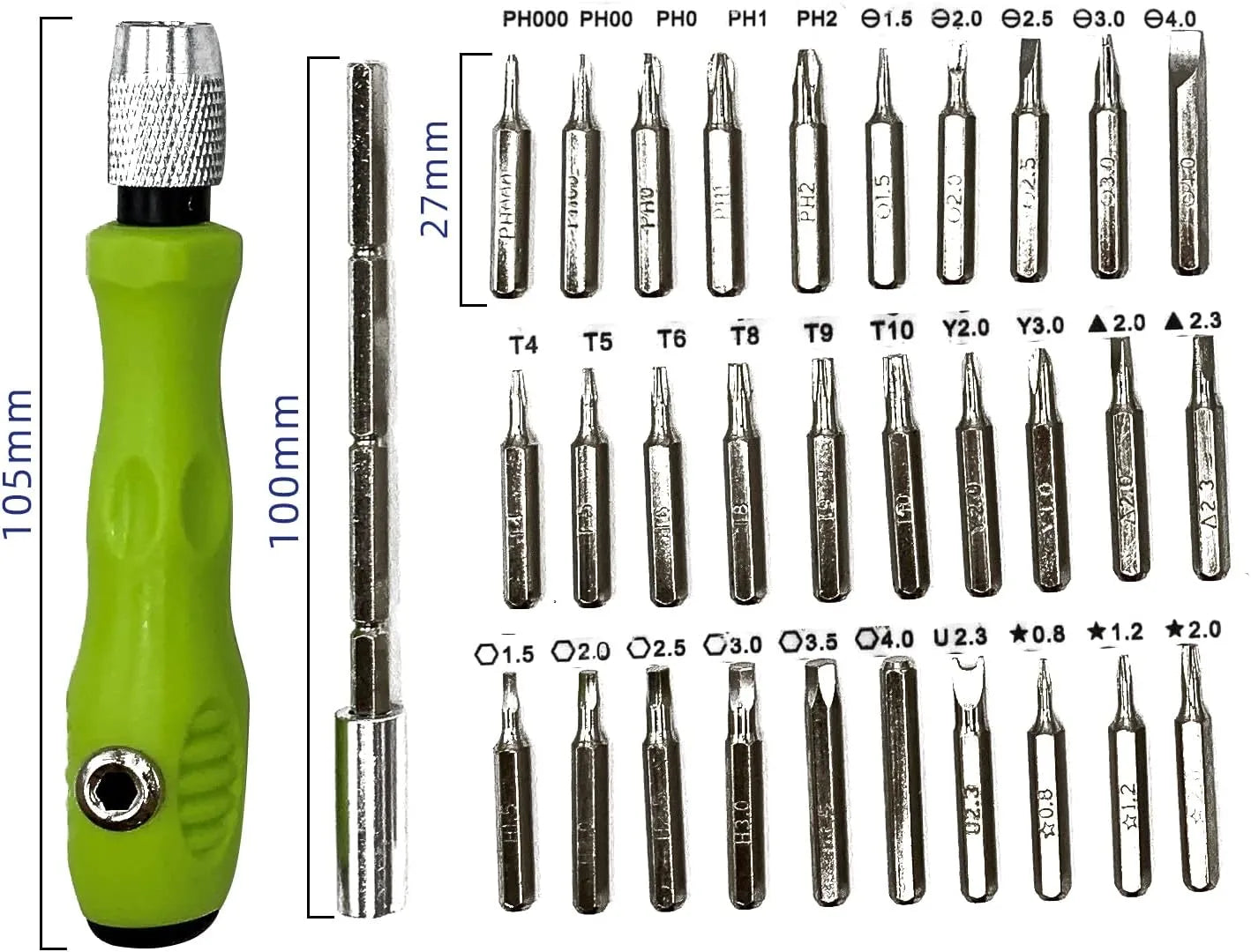 Un diseño pensando en quienes trabajan con precisión: técnicos de celulares, computadoras, electrónicos o simplemente para quien desea estar preparado en casa, encontrarán en este kit una herramienta compacta y completa ideal para llevar a todos lados.