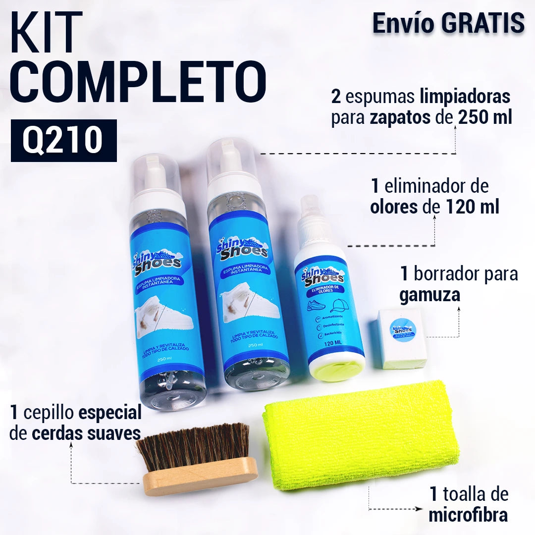 Desde espuma limpiadora para zapatos, espuma limpiadora para gorras, cepillo de cerdas suaves que no daña el material, toalla de microfibra, eliminador de olores hasta borrador para limpiar gamuza y materiales delicados. Tú elijes el combo ideal para ti.