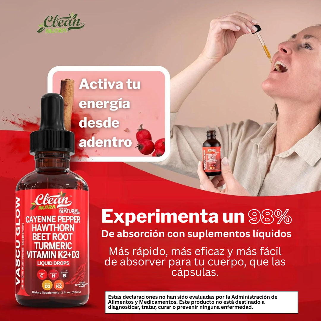 Vascu Glow te da energía sostenida, claridad mental y bienestar sin los altibajos de la cafeína.